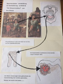 Op de vraag “Terug naar School” wist geen enkel team het maximale aantal punten te scoren. De Jenga Rockers en Dijk15 scoorden met 19,5 punt het beste en De Pikantjes en Supergeitisblij wisten 19 punten binnen te halen. Als je even naar beneden scrolt tref je de kunstwerken die bij deze opdracht zijn ingeleverd. Kijk vooral eens naar de tandentrekker van het team Zussen en Pieten. Een toppertje!